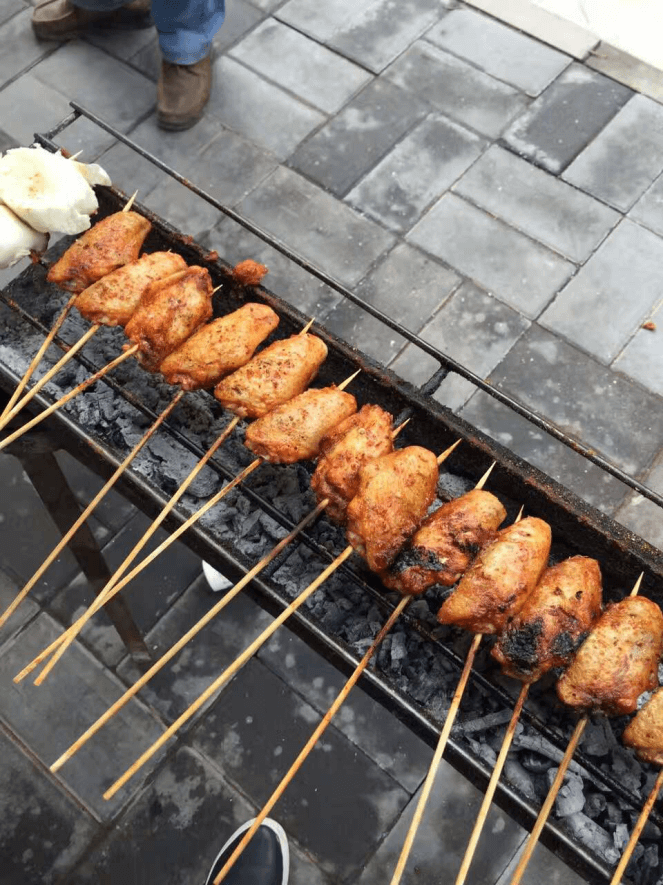 大家與既刺激又有趣的撕名牌游戲告別后,基本上都跑累了、喊累了、也笑累了,看看時間午飯時間到,回到基地,支起烤架、準備好火炭、領取食物,挽起袖子各自都拿出自己的看家本領,來一場濃香四溢的自助燒烤。